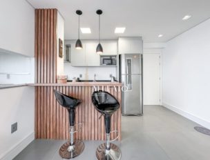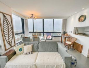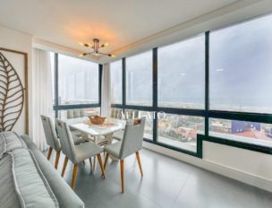 Apartamento com 2 quartos, sendo 1 suíte. Mobiliado e decorado, conta com churrasqueira, banheiro social e 1 vaga de garagem. Produto de alto padrão, com excelente posição solar e vista frente mar.