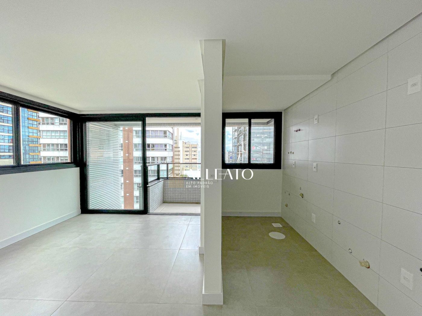 Situado na Praia Grande, ao lado das Quatro Praças, o apartamento conta com amplos 80,46m² privativos distribuídos em sala de estar e jantar integrados, cozinha americana, sacada, área de serviço, churrasqueira, banheiro social, 2 quartos (sendo 1 suíte), além de 1 vaga de garagem.