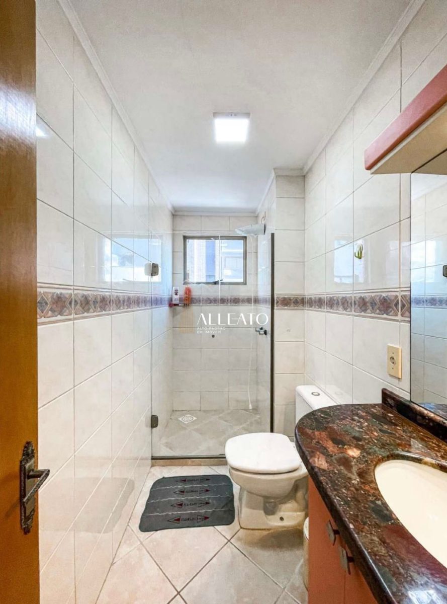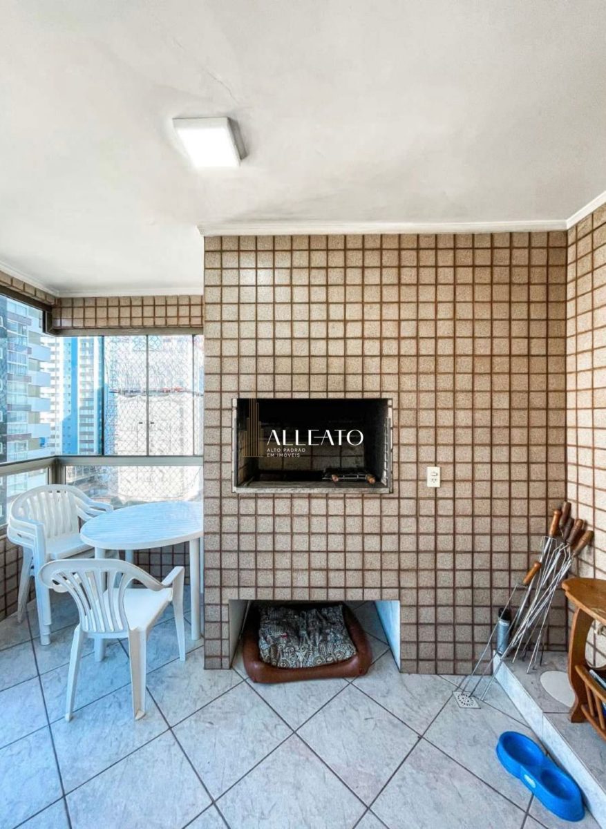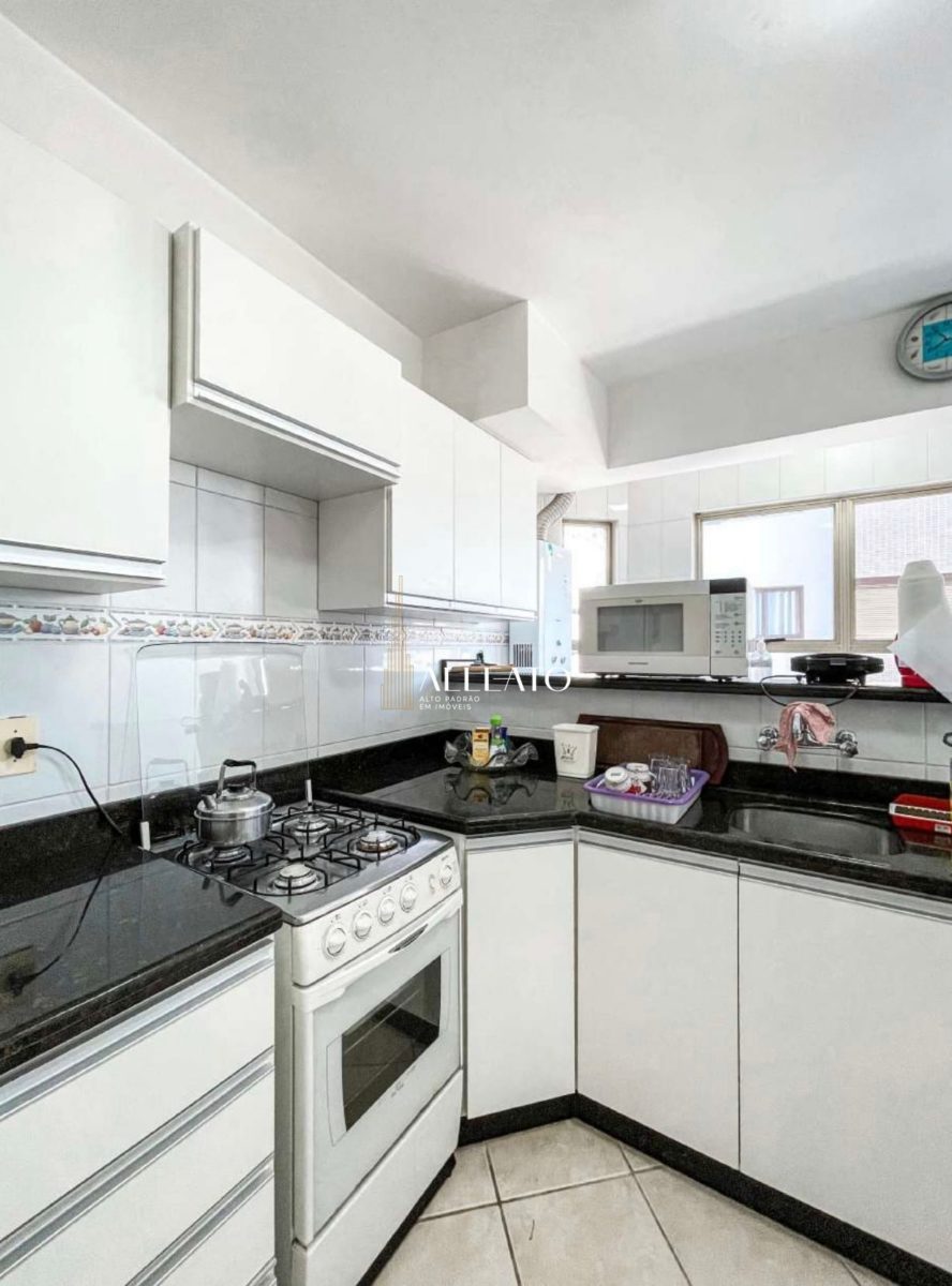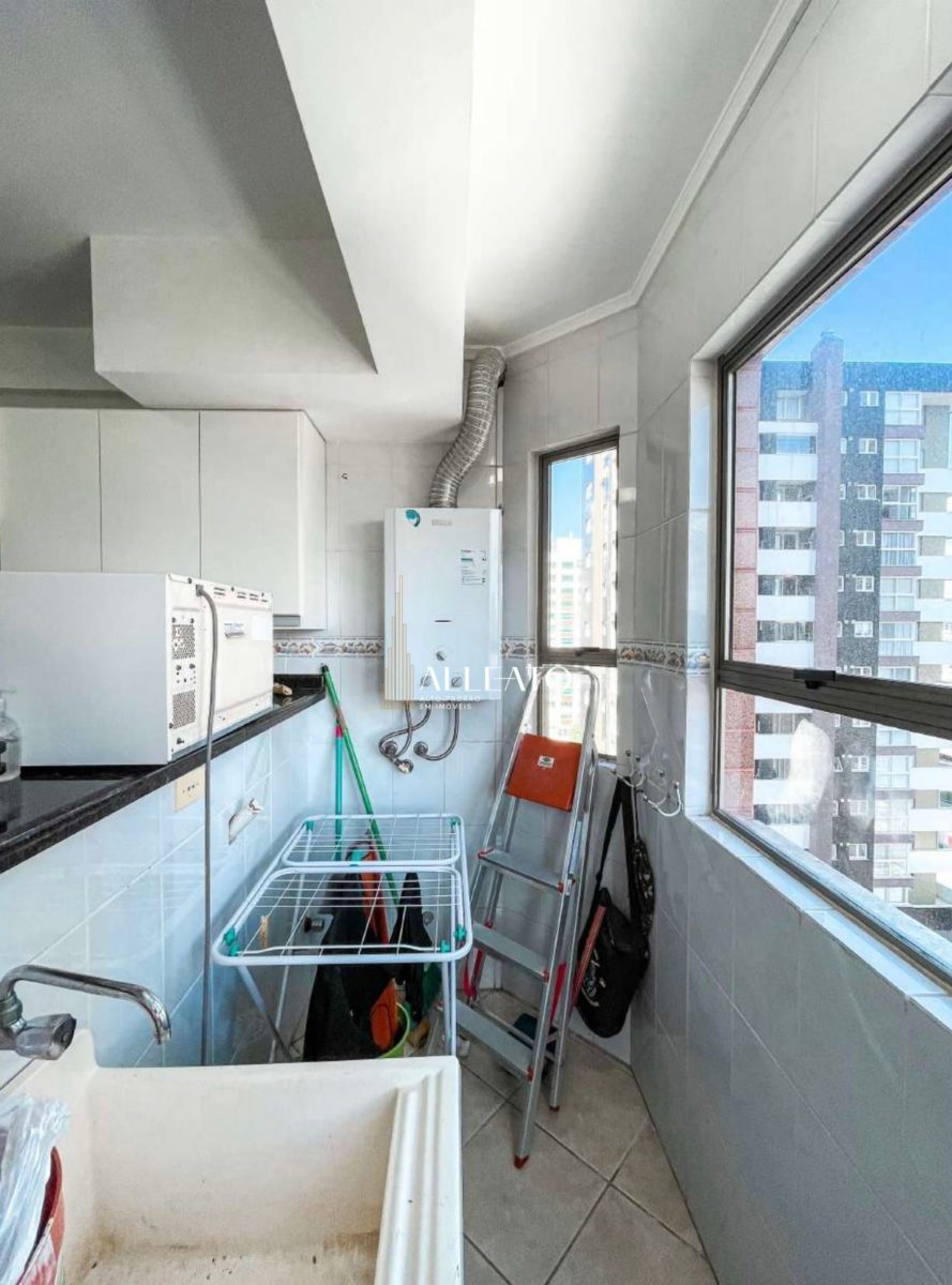 Mar de Flores, 1001, no 10º andar, com 100 m² privativos e orientação leste/sul/norte. Possui 3 quartos (1 suíte), vista para o mar e para as praças, sacada com churrasqueira, cozinha e lavanderia separadas. Apenas 2 apartamentos por andar, andar alto, localizado nas Quatro Praças e com 1 vaga de garagem.