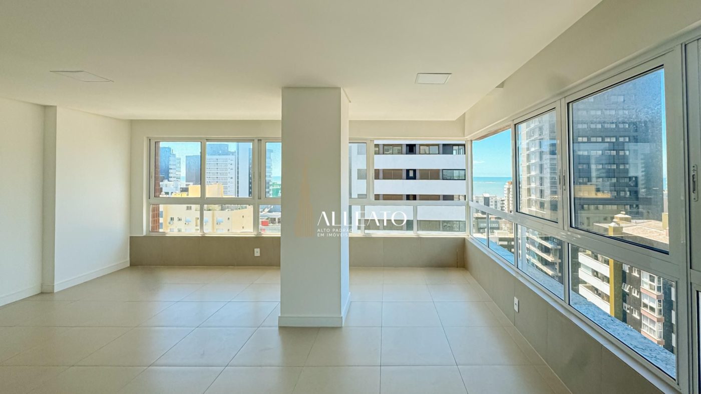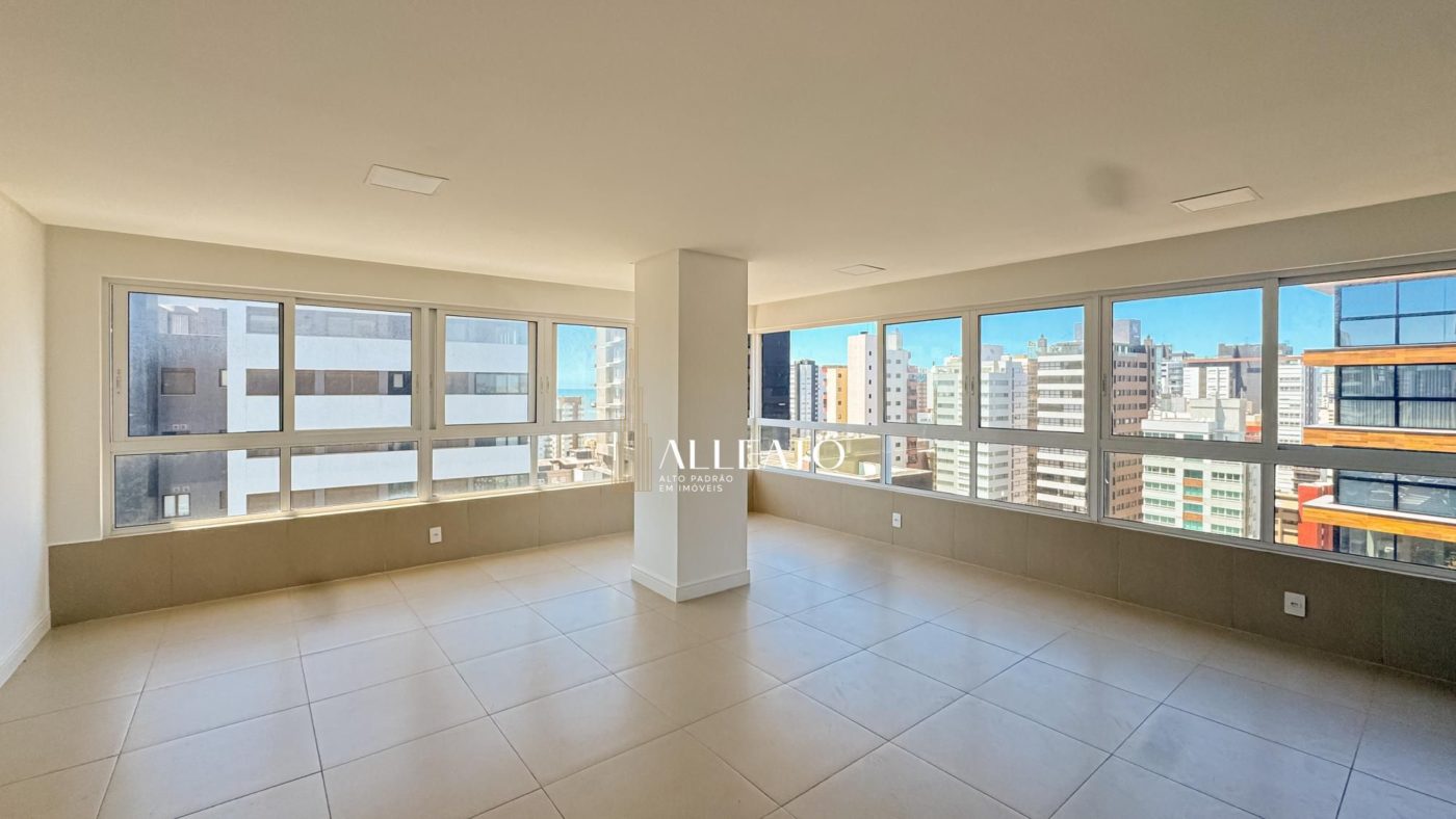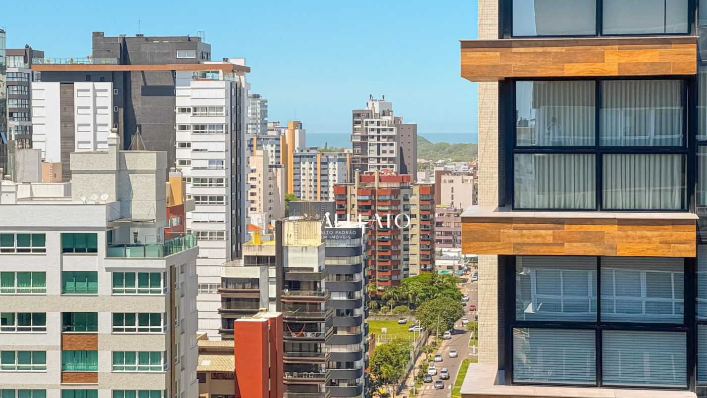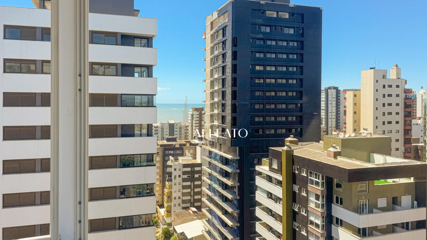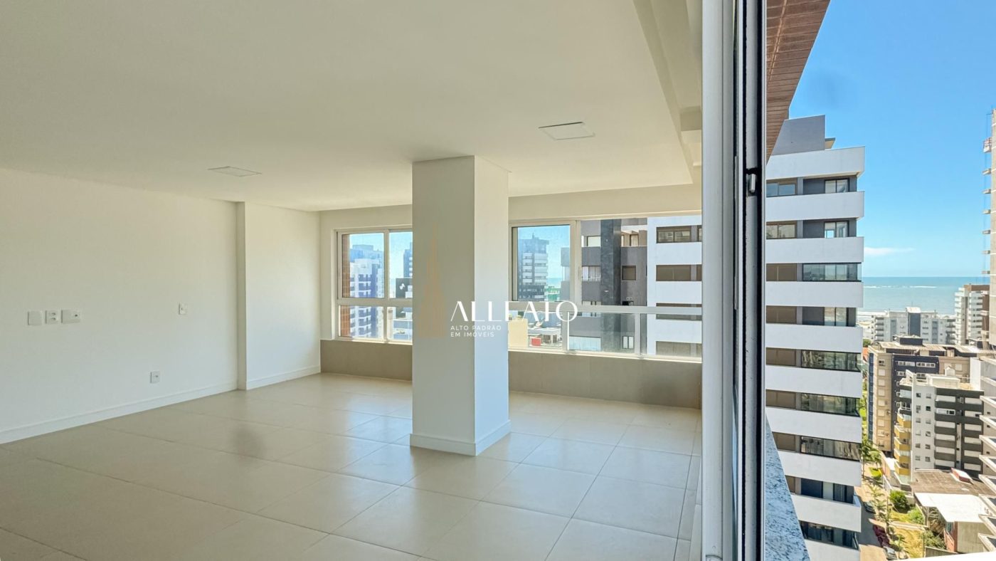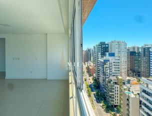 Apartamento de 110m², de esquina, com 3 quartos (1 suíte), banheiro social, amplo living e cozinha americana com churrasqueira integrada. Conta com vista para o mar e para a serra, sol da manhã e da tarde, banheiros com ventilação natural e vaga de garagem, planta bem iluminada e ventilada.