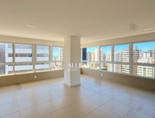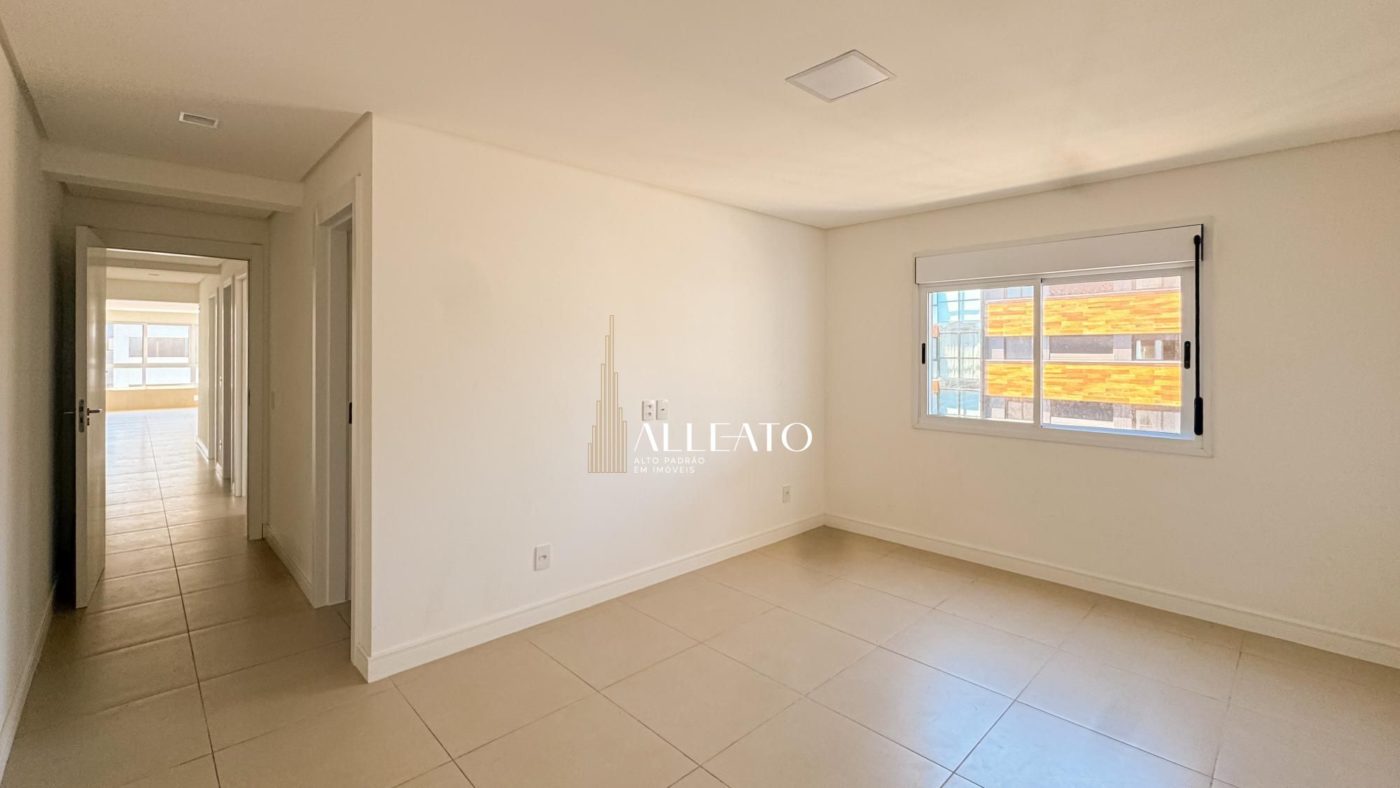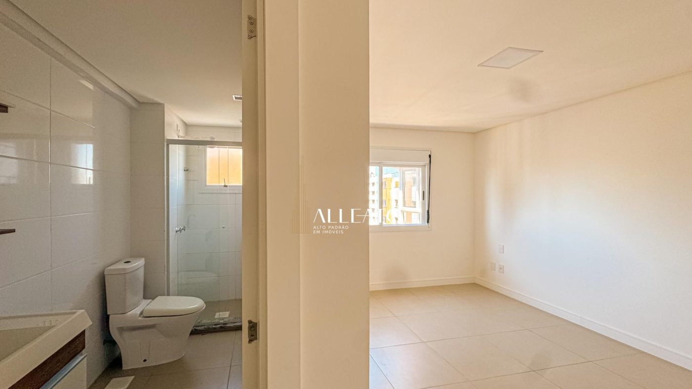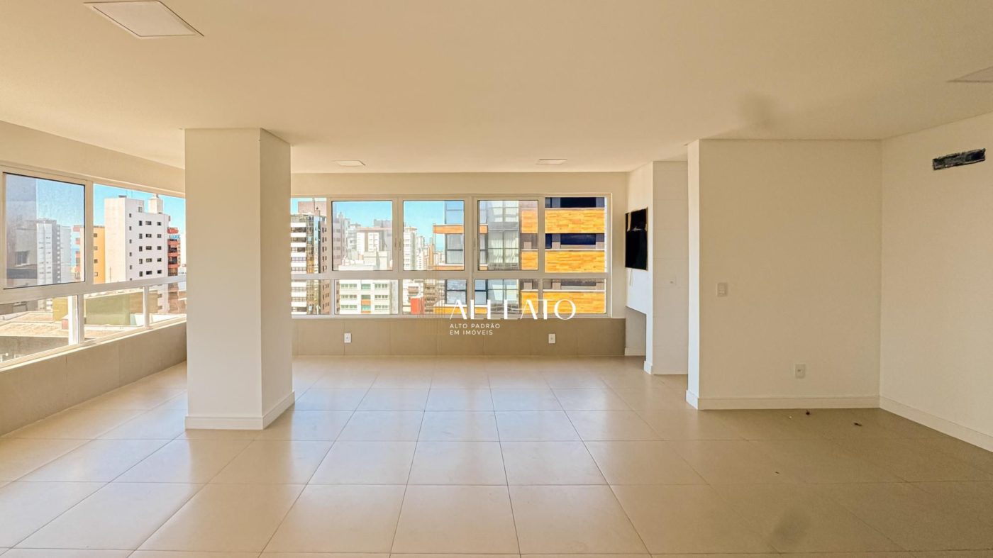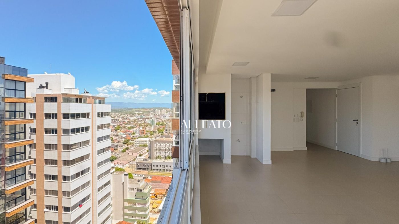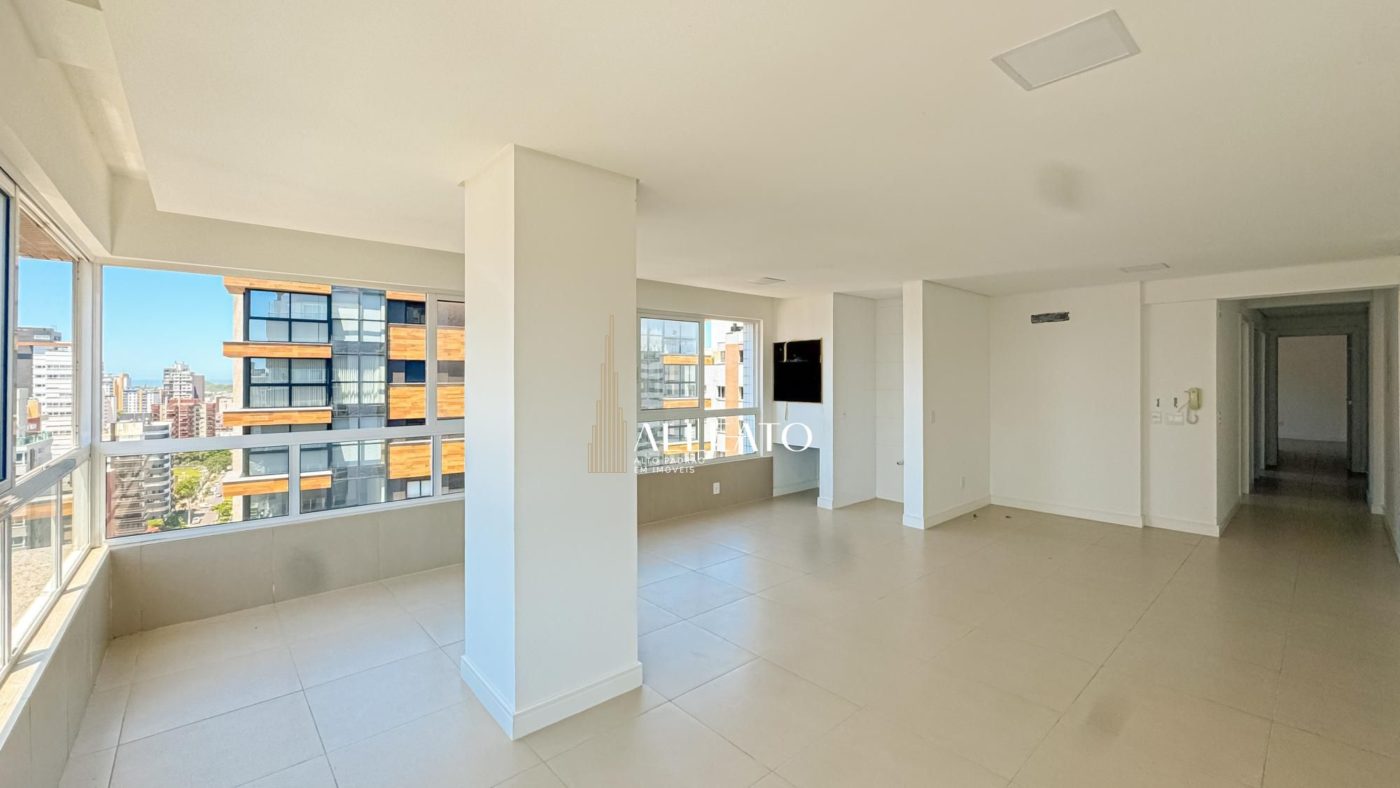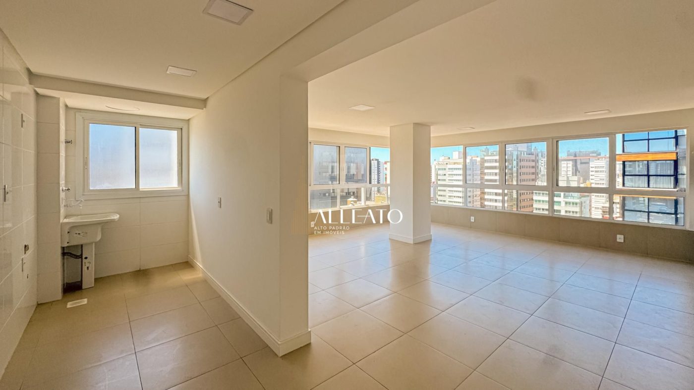 Apartamento de 110m², de esquina, com 3 quartos (1 suíte), banheiro social, amplo living e cozinha americana com churrasqueira integrada. Conta com vista para o mar e para a serra, sol da manhã e da tarde, banheiros com ventilação natural e vaga de garagem, planta bem iluminada e ventilada.