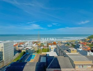 Apartamento com 119m² privativos, orientação leste/norte e vista eterna para o mar. Possui 3 suítes, cozinha americana, lavanderia integrada, esquadrias em PVC, portas laqueadas e 2 vagas de garagem.