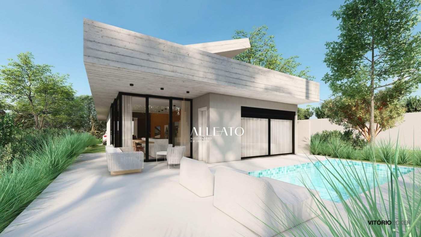 Casa térrea de 265 m² com arquitetura contemporânea e acabamento de alto padrão. Conta com 3 suítes, área gourmet integrada, piscina e paisagismo planejado, em um terreno de 369m². Previsão de entrega para junho de 2026.