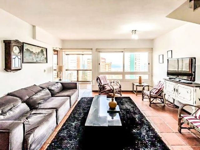 O apartamento dúplex conta com 03 dormitórios sendo 02 suítes, 04 banheiros, vaga dupla de garagem, living amplo sala de estar e jantar, churrasqueira, cozinha, área de serviço apartada, terraço com uma vista deslumbrante para o mar e quatro praças, mobiliado.